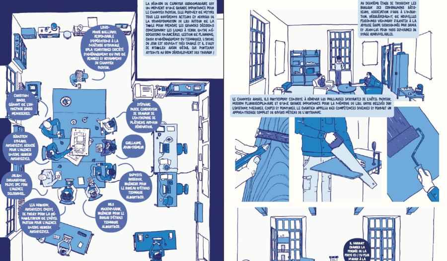 Cette bande dessinée est une invitation à découvrir le quotidien du chantier de l’Hôtel Pasteur à Rennes par l’observation sensible de François Baudry, étudiant en architecture, stagiaire auprès de l’agence Encore Heureux. 20 pages à parcourir pour s’aventurer dans les moments de vie de ce chantier atypique et hospitalier.